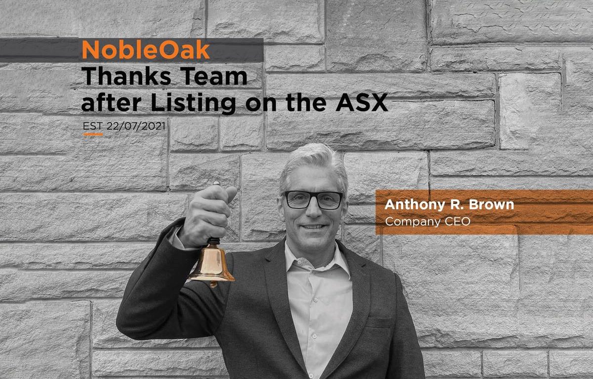 Following NobleOak’s successful listing on the ASX last week, on behalf of our Board, I’d like to thank our quality group of advisers. We couldn’t have asked for a better team.
